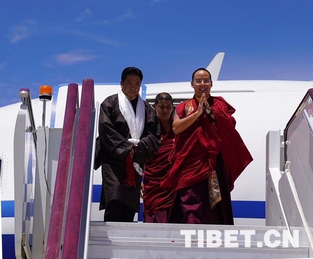 中国西藏网讯 7月17日,全国政协常委、中国佛教协会副会长班禅额尔德尼•确吉杰布乘机抵达拉萨开展考察调研、佛事活动。