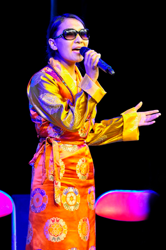 乐团演出时其米多吉老师(左一)现场客串演出。中新社记者 江飞波 摄