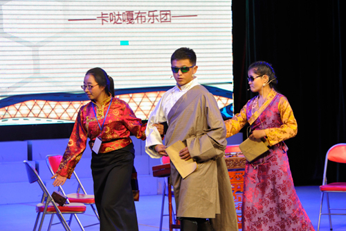 图为2015年,西藏首支盲人乐团“咔哒嘎布”举办“心看世界,与爱同行”为主题的感恩慈善晚会。来源:西藏商报