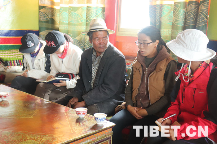 最后,队伍前往彭仓村农户家中了解实际情况。据悉,彭仓村是白朗县最先发展大棚蔬菜产业的村子,除了良好的自然条件和充足的劳动力外,村民们思想的解放是脱贫致富的重要因素。当年的彭仓村村民大多能接受大棚种植,所以蔬菜大棚产业最先发展了起来。现在,村民们不仅通过蔬菜大棚种植摘了“穷帽”,更多的村民开上了小汽车,换上了先进的农机,日子越过越红火。图为彭仓村拉巴次仁与人文科考队队员交谈。