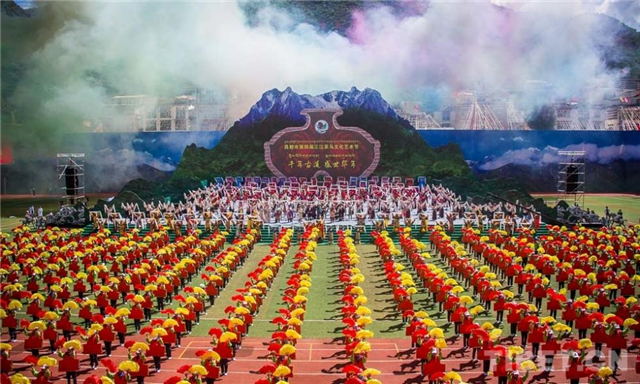 图为昌都市第四届三江茶马文化艺术节开幕式文艺演出。 摄影:赵耀