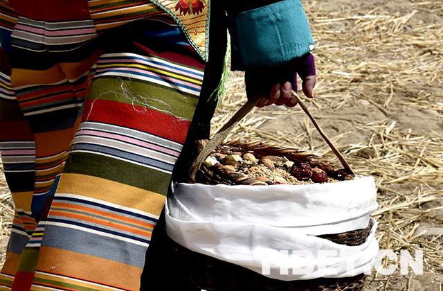 在距离拉萨市区90多公里的达孜区唐嘎乡穷达村,村民次拉姆身着节日盛装,带着仪式上播撒的种子来到了开耕现场。