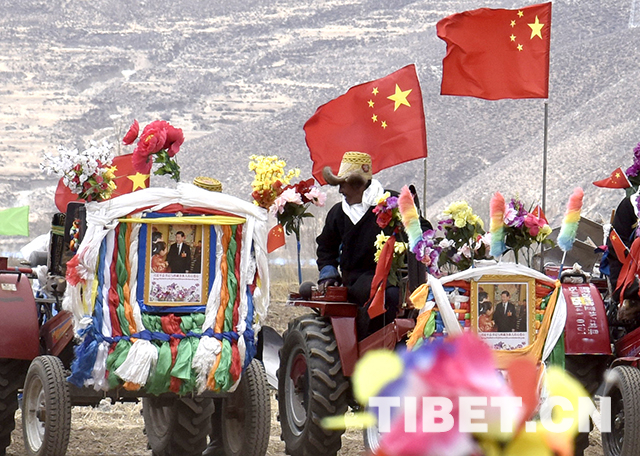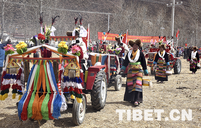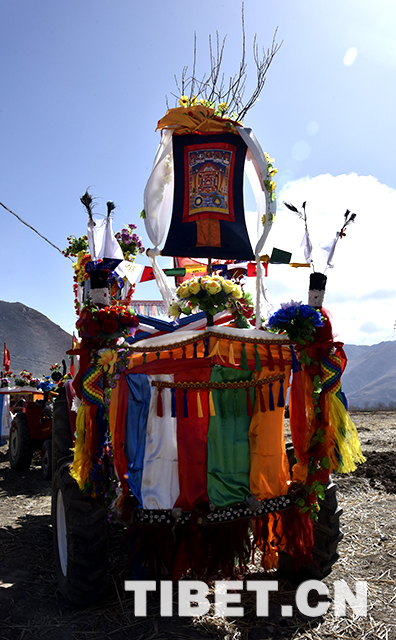 图为开耕仪式上,村民们为拖拉机手敬献切玛。