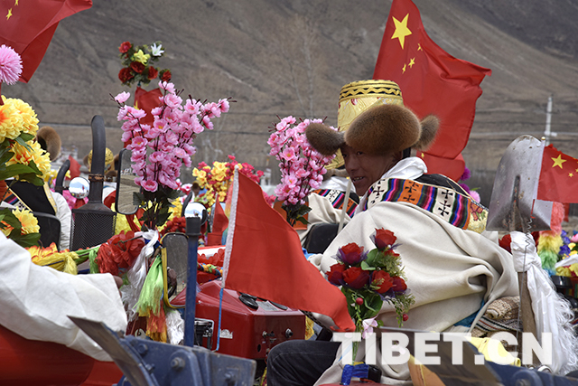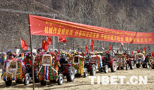 开拖拉机耕种自家20多亩农田已有10多年的米玛,这是他第一次被选中开启春耕第一犁。米玛说:“家里20多亩地以前都是牛耕,使用机械化耕种效率会大大提高。再加上有农业技术推广人员为我们提供专门的技术服务,种植青稞的收入也很好。”言语间,米玛显得有些紧张,双手不时整理着“搭档”拖拉机上的花束。
