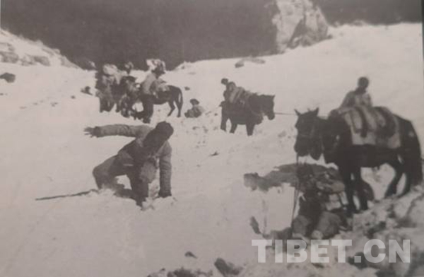 图为十八军先遣部队翻越雪山 图片翻拍自《雪域长歌》