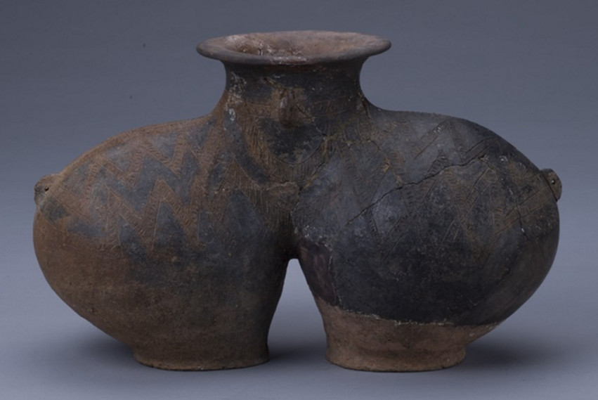 图为来自西藏昌都卡若遗址的双体陶罐。 图片来源:首都博物馆网站