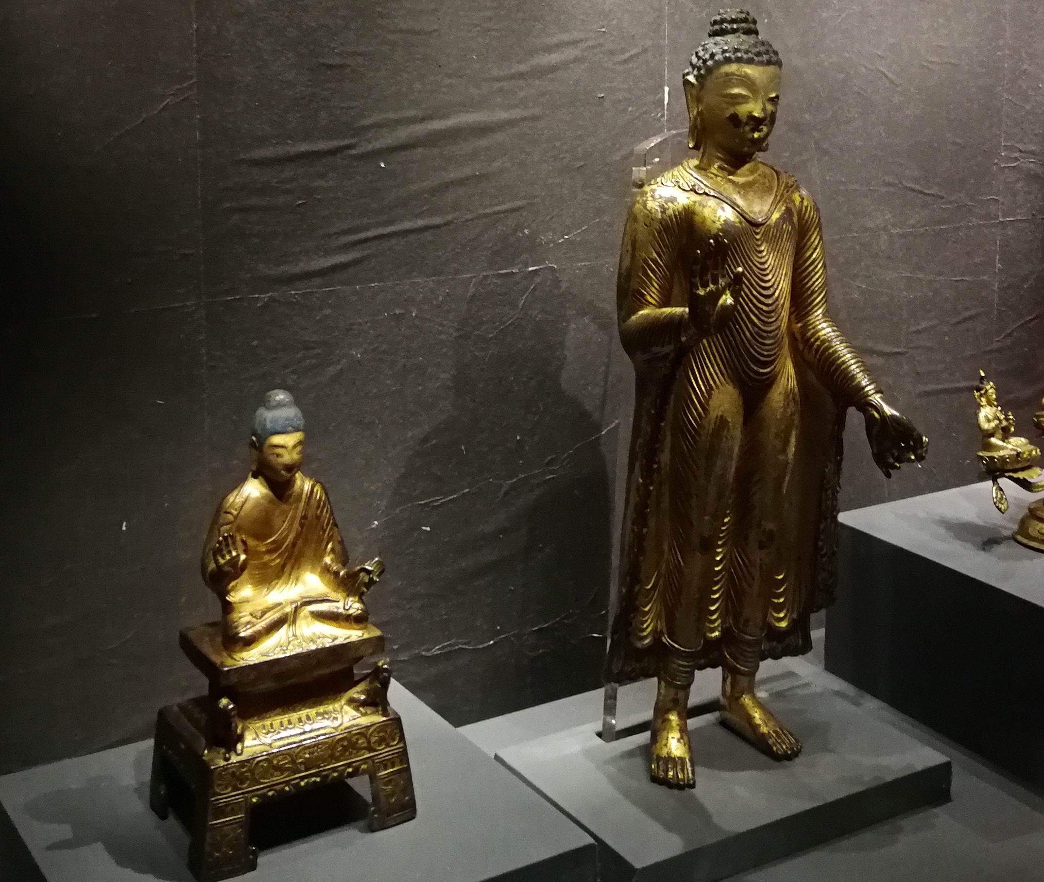 目前,一般认为佛教于公元7世纪中叶、在第三十二代赞普松赞干布的倡导下从印度与内地正式传入西藏。而这两尊佛像直观地体现了吐蕃与内地文化的融合,说明藏传佛教从一开始就承续了中国化佛教的基因。