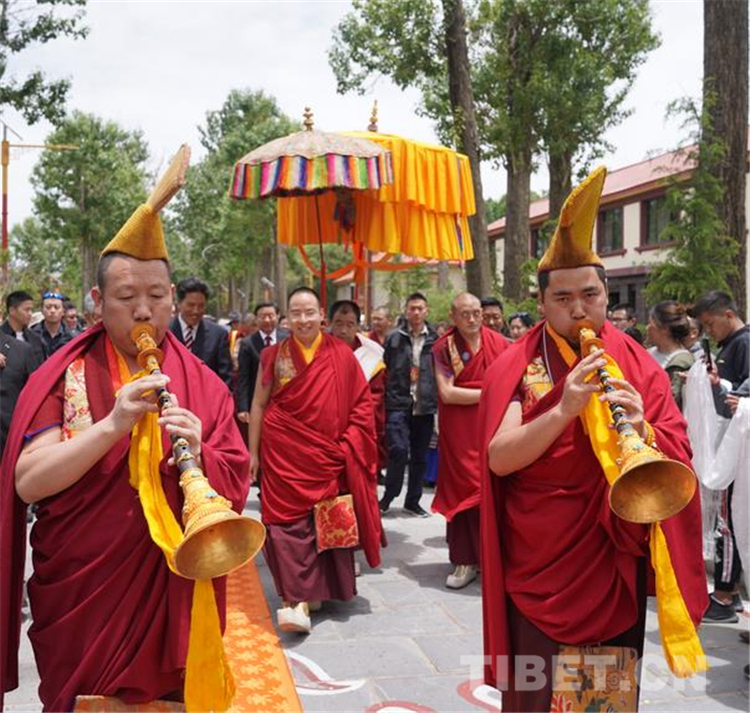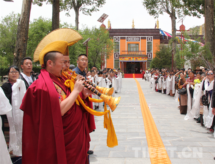 来自拉萨的僧众代表和信教群众代表,带着虔诚和喜悦的心情,满怀期待十一世班禅的到来。当大院内响起法号声时,早已在此等候的僧俗信教群众纷纷翘首踮足,一睹十一世班禅的风采。
