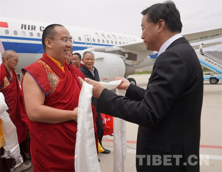 中国西藏网讯 6月的拉萨天蓝如镜、白云朵朵,沐浴在日光下的拉萨温暖和煦。6月11日,全国政协常委、中国佛教协会副会长班禅额尔德尼•确吉杰布乘机抵达拉萨。
