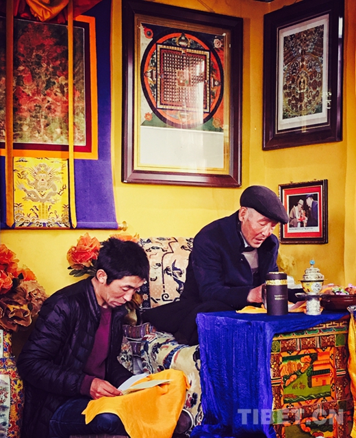 图为赤增绕旦向老师丹巴绕旦请教