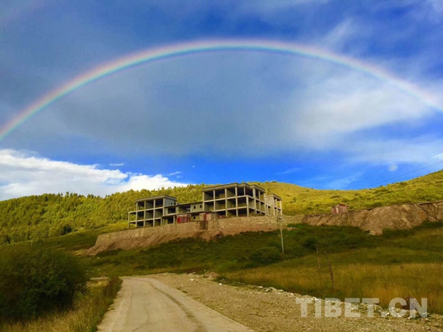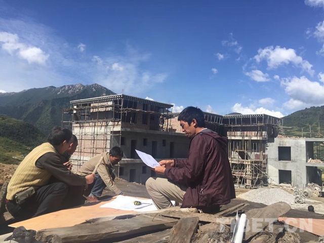 图为2015年8月,赤增绕旦回到松潘查看学校工程进度