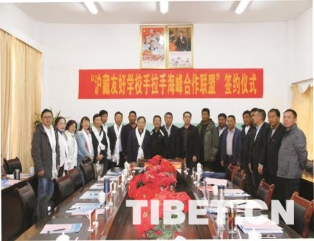 图为“沪藏友好学校手拉手海峰合作联盟”签约仪式