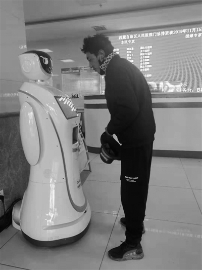 图为患者在使用智能导诊机器人图片来源:西藏商报
