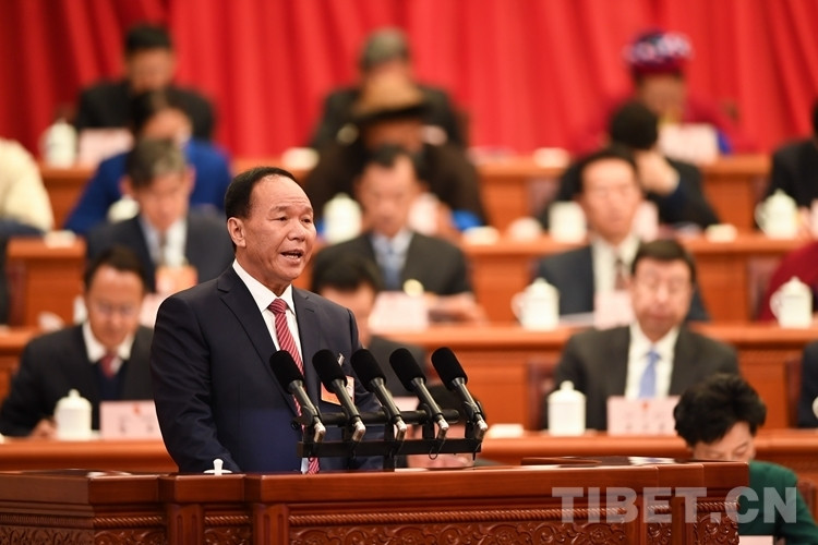 图为齐扎拉主席作政府工作报告 摄影:何蓬磊