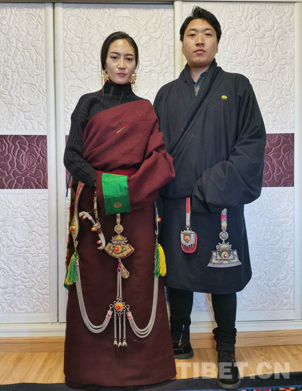 图为索南旦周的小女儿梅朵和女婿尕玛才丁佩戴着各式自己打制的金银装饰品