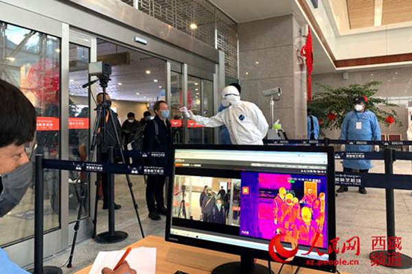 图为西藏自治区林芝机场使用的5G+热成像人体测温系统 图片来源:人民网