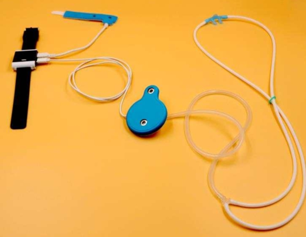 可穿戴式组合体征智能监测系统,可实时监测出患者血氧含量、呼吸频率、心跳速度等生理指标,还可以实时提取患者体位变化以及咳嗽带来的气流阻力变化。监测数据可通过蓝牙传输至手机App,并通过手机传输至云端系统,系统能够集合临床诊断原则,提取出呼吸疾病相关数据,初步判断患者的病情状态与变化趋势。这样,无论患者身处医院、居家或留观点,医生都能在办公室远程实时了解患者病情发展态势。