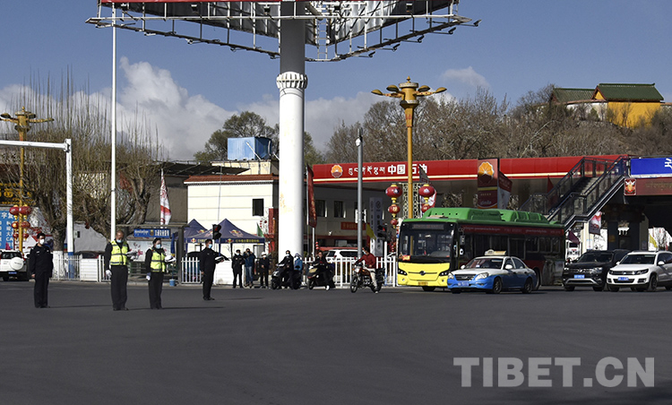 图为西藏自治区拉萨市北京中路与林廓西路十字路口,执勤人员摘下帽子致敬英雄、缅怀逝者 摄影:王媛媛