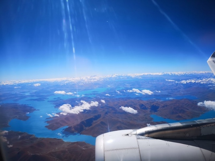 2013年秋天我去尼泊尔访问,回国时从加德满都起飞,很快就飞越连绵浩荡的喜马拉雅山脉。那一天天气特别晴朗,雪山、大地、森林、湖泊清晰展现眼前。我在飞机上竟然清晰分辨出了飞行路线,亚东口岸、康马县城、江孜宗山、白朗河谷、日喀则札寺伦布寺,然后飞往拉萨。飞机的影子行走在大地上,似乎和我曾经的脚印重合了。那一刻,我泪流满面。