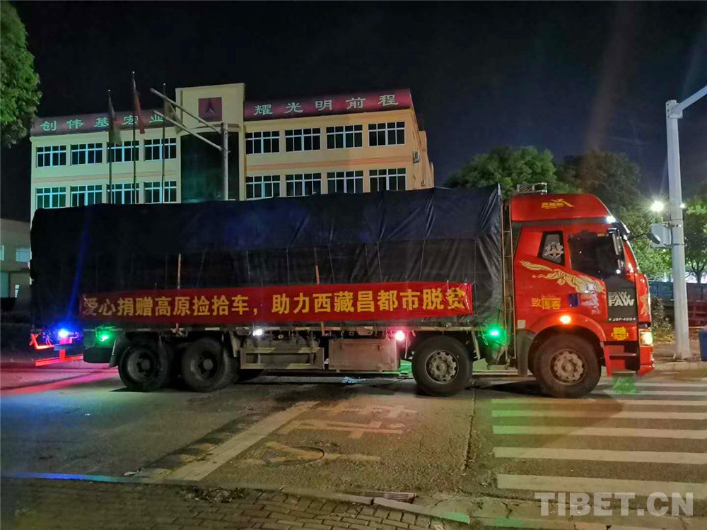 图为载满高原捡拾车的货运车正在驶向西藏自治区昌都市 图片由北京建藏援藏工作者协会提供