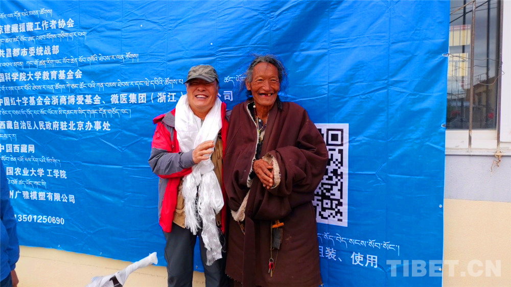 图为协会秘书长王健(左)和当地藏族群众合影摄影:王茜
