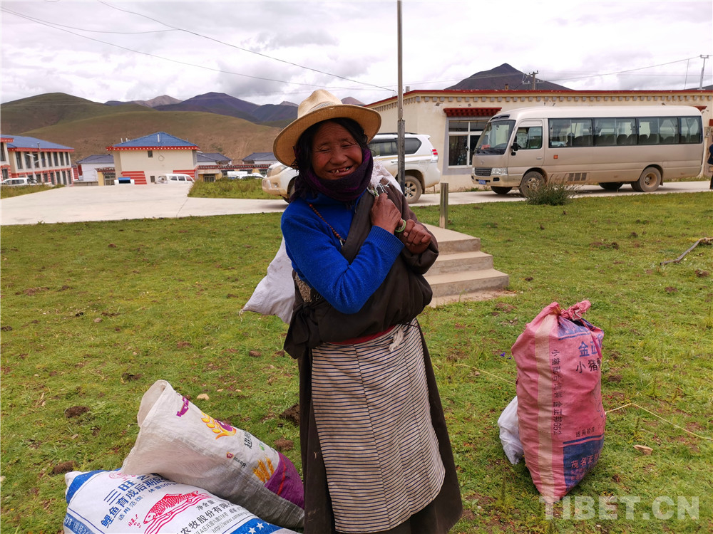 图为前来用牛粪换取高原捡拾车的藏族阿妈乐得眯起眼睛 摄影:王茜