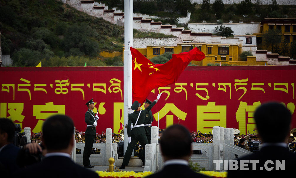 图为2019年10月1日,西藏自治区各族各界代表庆祝中华人民共和国成立70周年升国旗仪式在布达拉宫广场庄严隆重举行。摄影:赵耀