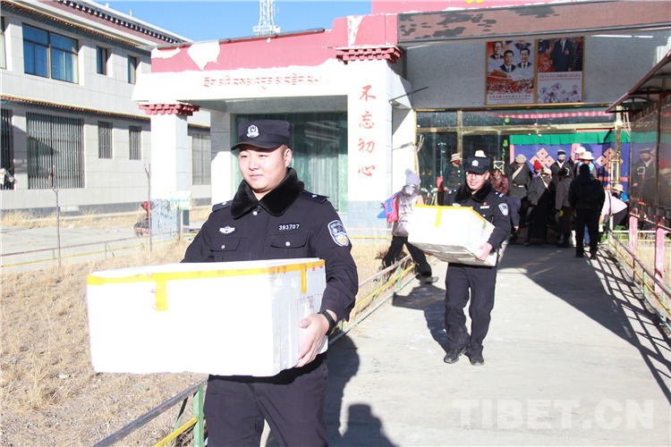 为仲巴边境管理大队民警给敬老院老人送来日常生活用品 摄影:亓宝阳