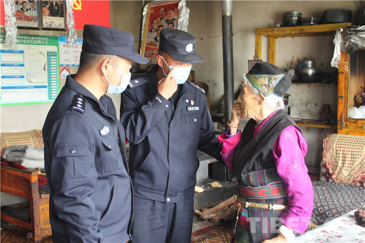 图为吉隆边境派出所民警与老人交谈,询问老人身体现状 摄影:应博