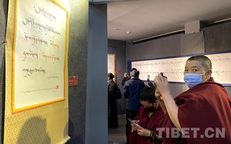 中国西藏网讯 或拿起手机拍照留存,或驻足作品仔细端详。5月10日,“同心共筑中国梦”——西藏僧尼群众书法精品展在西藏自治区拉萨市展出。