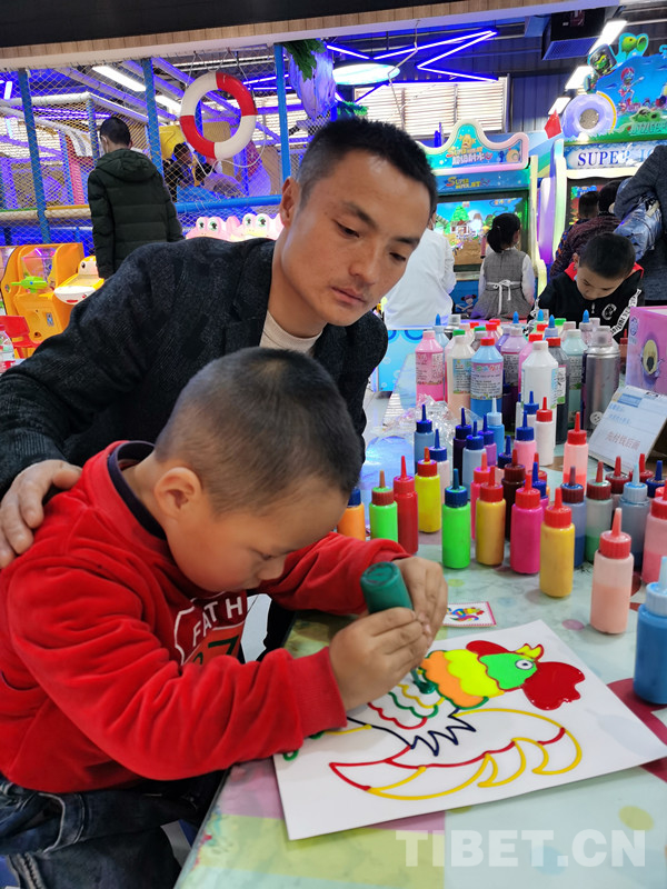 这是爸爸去年回家我们一起拍的照片,爸爸给我买了崭新的小藏袍,我好高兴啊。另外,我可不是眼睛小,我只是随我爸爸!
