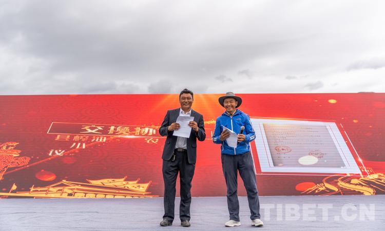 中国西藏网讯 7月13日,第四届西藏•墨竹小油菜花文化旅游节开幕。“今天我们村签订了800亩油菜的收购协议,村民们再也不用担心油菜籽没地方卖了,而且价格可以卖得更高,让我们更愿意种植油菜等经济作物。”西藏自治区拉萨市墨竹工卡县扎西岗乡加尔多村村民普布次仁兴奋地说。