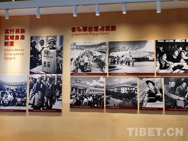 《十七条协议》签订、西藏自治区第一次人民代表大会召开、习近平总书记来信、对口援藏资金图表……一幅幅图片、一份份史料将西藏和平解放70年来,西藏从黑暗走向光明、从落后走向进步、从贫穷走向富裕、从专制走向民主、从封闭走向开放的历史生动地呈现出来。班禅不时驻足观看,详细询问有关情况,对西藏近年来各项事业取得的成就予以充分肯定。