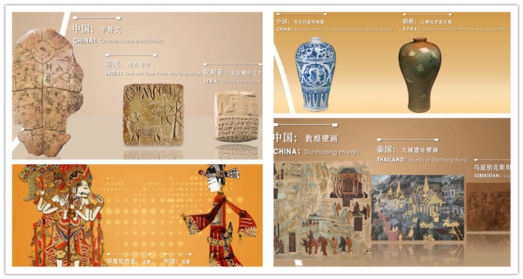 图为部分亚洲文化遗产 (亚洲文化遗产宣传片截图拼接 制作:刘莉 视频来源:国家文物局)