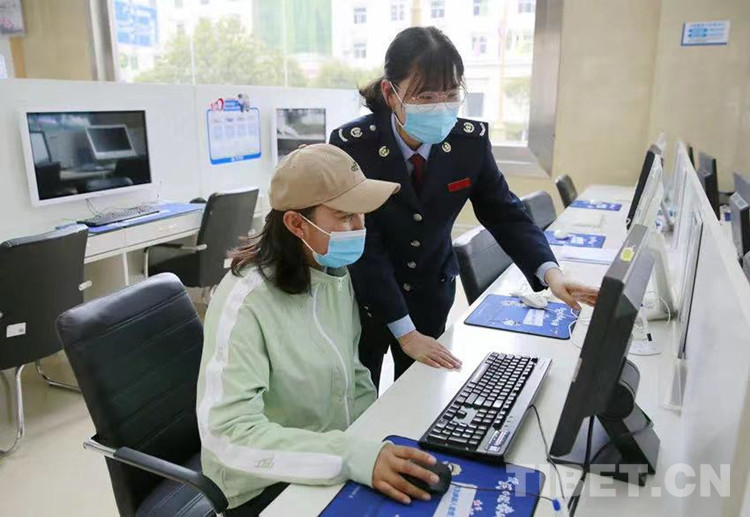 图为西藏税务部门工作人员指导企业人员办税 图片由国家税务总局西藏自治区税务局提供