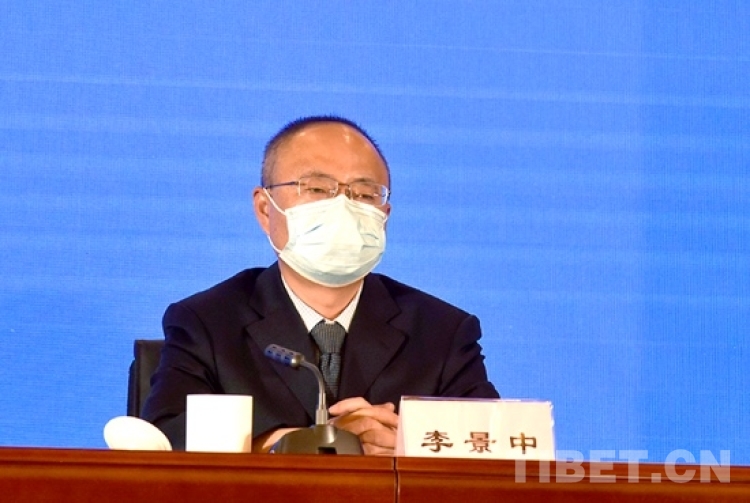 图为西藏自治区新型冠状病毒肺炎疫情防控工作第五场新闻发布会上,西藏自治区疾病预防控制中心主任、主任医师李景中通报西藏自治区新冠肺炎疫情防控工作最新情况 摄影:王媛媛