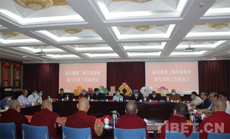 中国西藏网讯 5月24日,藏传佛教三级学衔统编教材编写出版工作座谈会在中国藏语系高级佛学院召开。中央西藏工作协调小组办公室副主任郑堆出席会议并讲话。中央统战部、中国佛教协会有关人员,藏传佛教三级学衔教材编委会主任、副主任和出版社负责人,西藏和涉藏工作重点省党委统战部、藏语系佛学院代表,藏传佛教各教派寺庙的经师代表等参加会议。