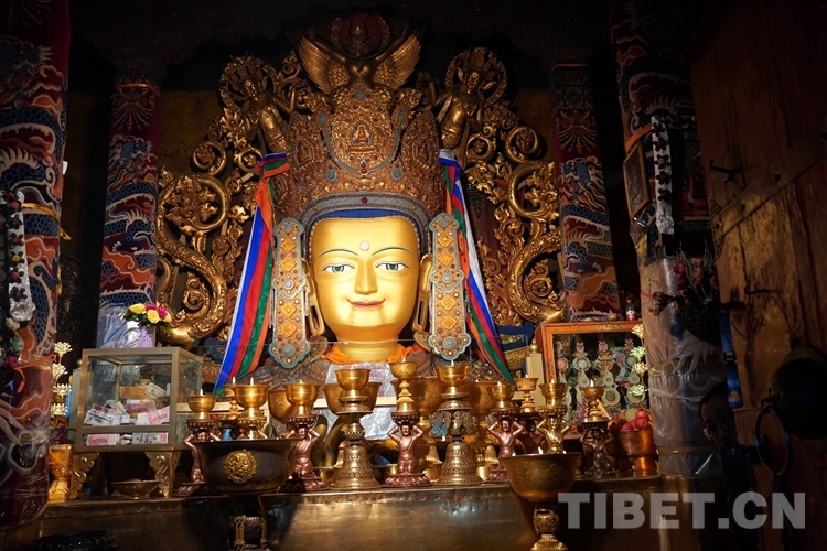 上午9时,在僧众的期盼中,班禅抵达哲蚌寺。顿时,锣鼓喧天,法螺、法号齐鸣。在手持香炉的高僧以及吹唢呐的僧人引路,手持黄伞的高僧护送下,班禅缓步走进措钦大殿,逐一朝拜寺内各殿堂,并向主供佛像敬献哈达。期间,班禅还前往甘珠尔拉康参访,这里藏有多部《甘珠尔》大藏经。