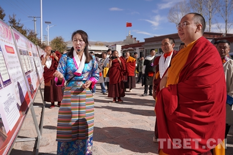 图为班禅就扎西吉培寺“三个意识”教育开展情况和僧人综合考评机制有关情况进行调研 摄影:王淑