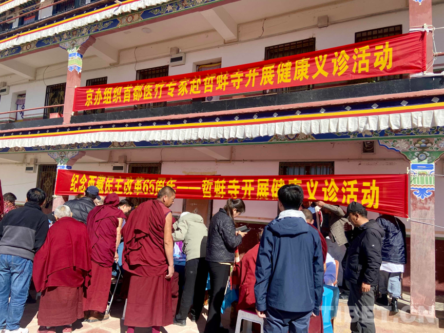 中国西藏网讯 “收到今天有北京医疗专家过来义诊的消息,我一大早就过来了。身体平时没什么大的毛病,就想着借此机会检查一下,毕竟年纪大了。”66岁的哲蚌寺僧人加参高兴地说。为了让哲蚌寺僧人和周边民众在家门口就能享受到优质的医疗服务,传播健康生活理念,提高健康意识,3月29日,西藏自治区人民政府驻北京办事处(以下简称:京办)组织北京11家重点医院的12名医疗专家走进位于拉萨市城西的哲蚌寺,开展“踔厉奋发担使命 送医进藏暖民心”义诊活动,得到僧人和群众的一致称赞。