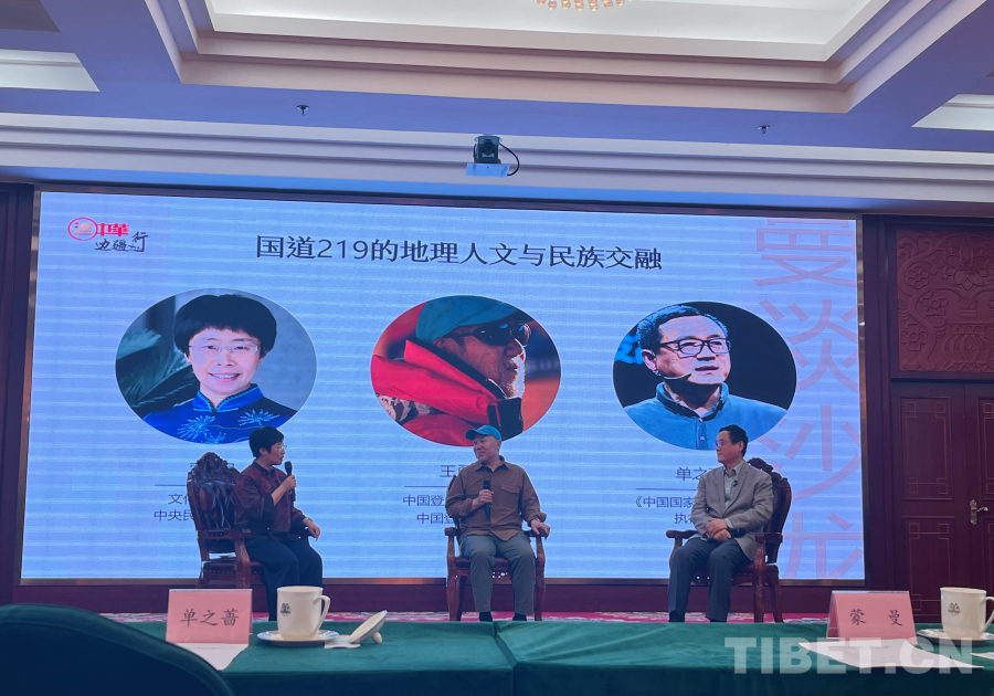围绕即将正式启程的“曼行国道·219”活动,现场还举行了“曼谈沙龙”,蒙曼教授与特邀嘉宾——中国登山协会副主席、中国登山队队长王勇峰,《中国国家地理》杂志社执行总编单之蔷,围绕“曼行国道·219”沿途的自然地理、人文历史、民族风俗等话题展开了对话。蒙曼教授分享了她对于219国道沿途历史文化、各民族生活情态和非遗传承等内容的了解和期待;单之蔷结合亲身经历,分享了他对于219国道壮美景色和地理景观的印象和出行经验;王勇峰则从户外安全角度,对219国道沿线需要注意的事项进行了安全讲解和现场指导。