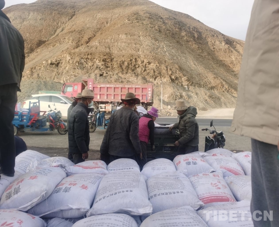 图为驻村工作队协调20吨有机肥并组织群众领取
