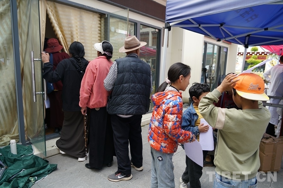 得知有来自北京的医疗专家为大家义诊,家住白玉县城的切呷一大早便带着父母来到了义诊现场。她的母亲泽仁拉嘎今年75岁,自述下肢从腰间、腿部到脚尖都会发麻、有疼痛感,行走时腰部会很累,偶尔还会因为控制不好腿部活动而摔倒。北京水利医院创伤骨科副主任医师王耀辉在经过详细问诊后,为拉嘎阿妈开具了营养神经的药品,并建议她进一步做胸椎和腰椎方面的检查。