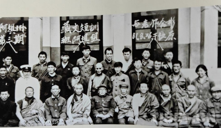 图为阿坝州第三期藏文短训班时阿坝组与毛尔盖·桑木旦合影(图片由作者提供)