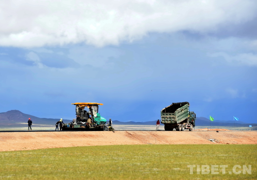 图为正在铺筑通往双湖县的柏油公路(唐召明2017年7月27日摄)