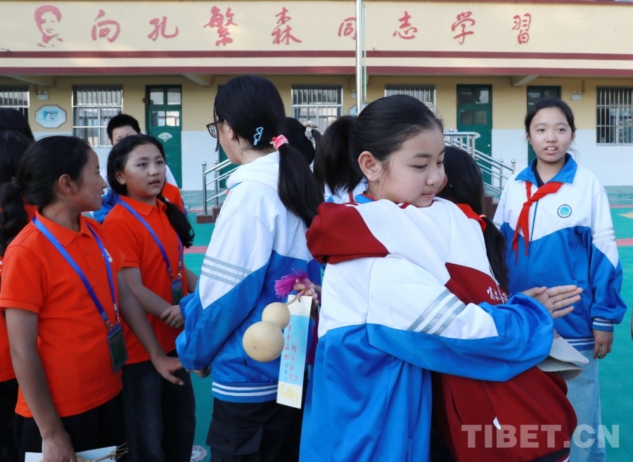 中国西藏网讯 9月25日,西藏自治区阿里噶尔县孔繁森小学的师生来到位于山东省聊城市的堂邑镇中心小学开展联谊活动。堂邑镇是孔繁森同志的故乡。两所学校的孩子们一起瞻仰孔繁森同志事迹、一起做游戏、同唱中国少年先锋队队歌、共绘迎国庆主题画卷……结下了深厚的情谊。