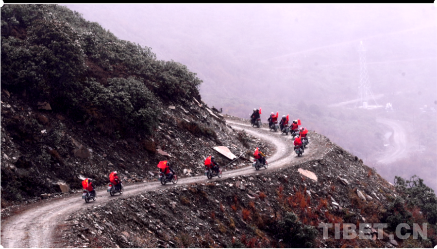 “这条路,我们每天都有人走。”索朗巴旦说。他驾驶摩托车的技术娴熟自如,但在某些特别危险的路段,还是会放慢速度,提醒后面的队员注意安全。