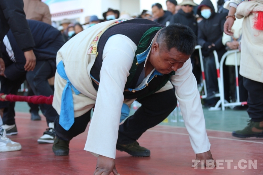 中国西藏网讯 11月21日下午,山南市首届农牧民运动会迎来了一场力量与传统的精彩对决——押加项目决赛。赛场中央,两位运动员如巨象相争,俯身蹬腿,奋力将象征胜利的红布中心点拉向己方。那一刻,肌肉贲张的姿态与全神贯注的眼神,将藏族传统体育的力量之美展现得淋漓尽致,也彻底点燃了全场的激情。