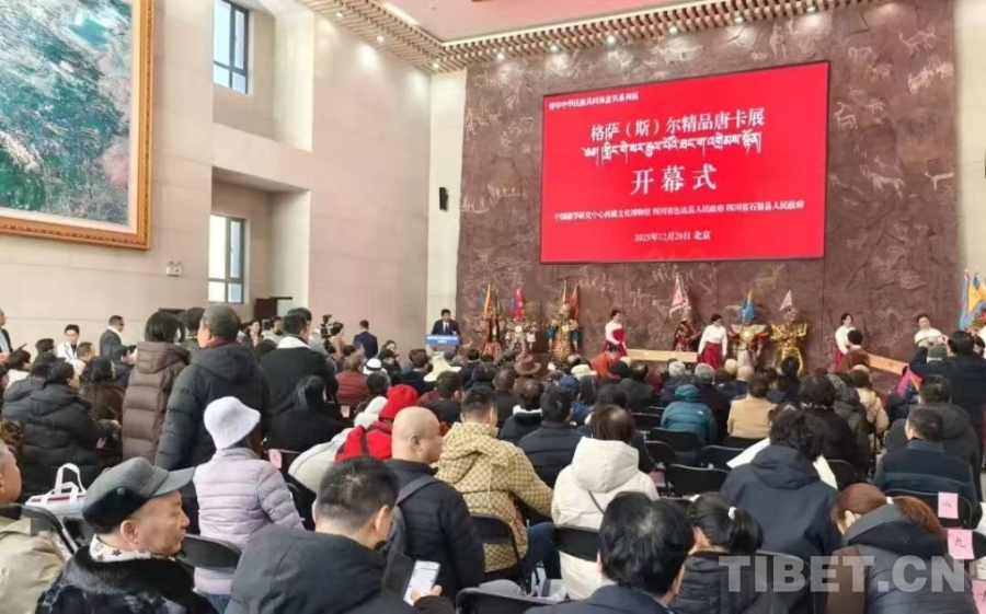 中国西藏网讯 12月20日上午,由中国藏学研究中心西藏文化博物馆、四川省甘孜藏族自治州色达县人民政府、石渠县人民政府共同主办的格萨(斯)尔唐卡精品展在西藏文化博物馆开幕。展览展出由格萨尔说唱世家传承人格瓦荣布先生和国家级非遗代表性传承人、四川省工艺美术大师拉孟先生历时17年共同创作完成的格萨(斯)尔主题系列唐卡精品。