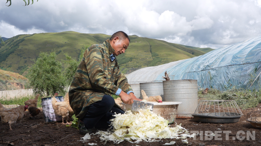 图为臧涛细致开展日常管护,全力保障家禽养殖稳产增收。